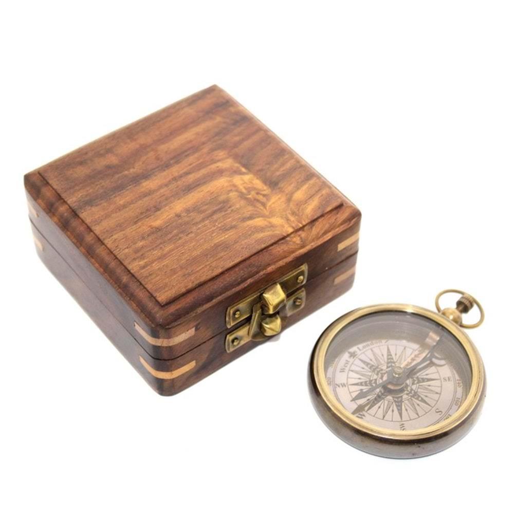 Ahşap Kutulu Pirinç Pusula