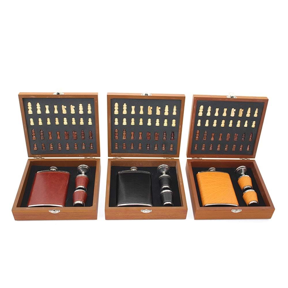 Ahşap Kutulu Satrançlı Matara Seti Derili