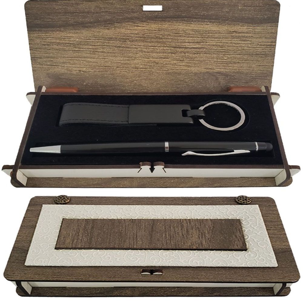 Ahşap Kutulu Siyah Kalem Ve Anahtarlık Set
