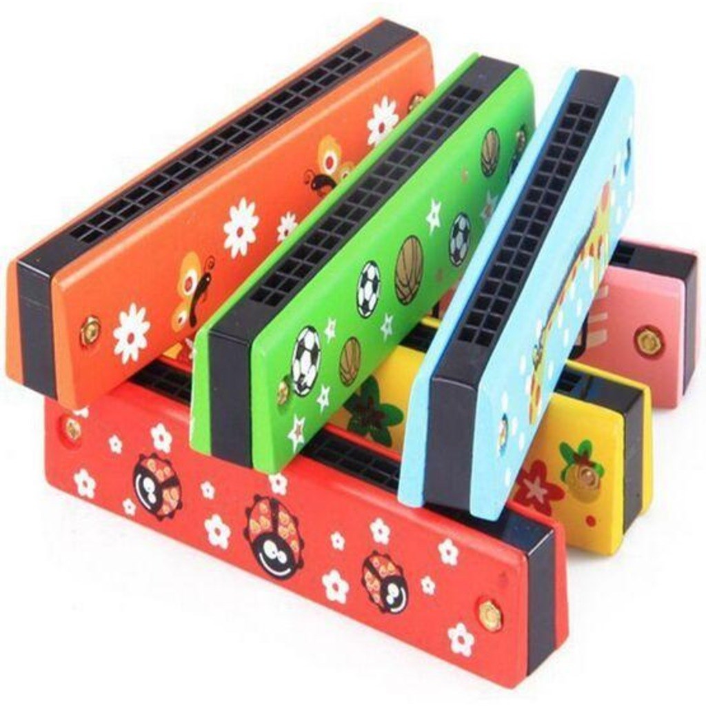 Ahşap Mızıka 16 Delikli Çift Sıralı Renkli Desenli Çocuk Mızıka
