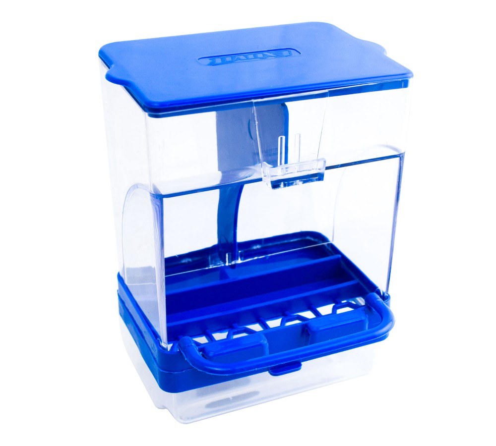 Kolay temizlik imkanına sahip sürgülü hazneli akıllı yemliktir. Yem sarfiyatını neredeyse sıfıra indirir. Kuşunuzun yediği yemlerin kabukları yemliğin alt haznesinde toplanarak etrafa yem kabuklarının saçılmasını önler ve yem ayıklamanıza gerek kalmaz. Normal yemlikler de kuş yemi yedikten sonra üstte biriken yem kabuklarını temizlemeniz gerekir. Bu kabuklardan dolayı kuşun yiyemediği yemler de ziyan oluyor. Bu tasarım sayesinde yem kabukları direk alt hazneye dökülüyor böylece yem ziyan olmaz. Alt haznede çekmeceli olduğundan temizlemesi çok kolaydır. Yüksek yem kapasitesiyle kuşunuzun yemini uzun süre yenilemenize gerek yoktur. Ergonomik yapısıyla hemen hemen her kafesin dışına ve salmaların içine monte edebilirsiniz. Kafes kuşlarına özel akıllık kuş yemliğidir.