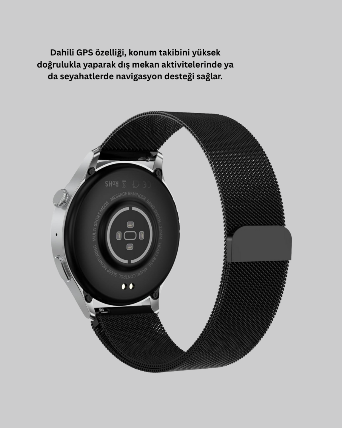 Tüm bu gelişmiş özellikleri bir araya getiren akıllı saat, teknolojiyi günlük yaşamla buluşturan hem şık hem fonksiyonel bir yardımcıdır.