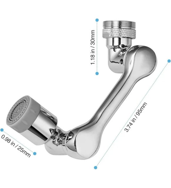 AKROBAT MUSLUK BAŞLIĞIHer Köşeye Ulaşan Temizlik, 1080° Çok Yönlü Döndürme ile1080° çok yönlü döndürme robotik kol tasarımı, su akışının lavabonun her köşesine ulaşmasını sağlayan toplam üç adet 360° dönüş arayüzüne sahiptir. Musluk havalandırıcı, iki su çıkış modu arasında geçiş yapabilme özelliği ile sıçramadan yumuşak kabarcık akışı elleri yıkamak için idealdir ve basınçlı sprey ise bardakları durulamak için uygundur.Bu ürün, metal görünümlü yüksek kaliteli ABS plastikten üretilmiştir ve aletsiz kurulum imkanı sunar; elle kolayca monte edilebilir. Çoğu ev musluğuyla uyumlu olan bu musluk ucu, 20/22/24 mm olmak üzere üç farklı diş seçeneği içerir. Çok amaçlı tasarımı sayesinde, mutfakta çeşitli meyveleri ve bulaşıkları yıkamak, banyoda yüzünüzü veya saçınızı yıkamak ve lavaboyu temizlemek için uygundur.Çift fonksiyonlu su akışı tasarımı, inatçı kirlerden kurtulmayı ve suyun lavabonuzun her köşesine ulaşmasını sağlar, mutfaktaki tüm ihtiyaçlarınızı karşılar. Mutfakta sebze ve meyveleri durulamak için, yemekleri yıkamak ve lavaboyu temizlemek için kullanılabilir. Banyoda ise günlük el ve yüz yıkamada büyük rahatlık sağlar ve pratik bir şekilde saçlarınızı yıkamanıza olanak tanır.