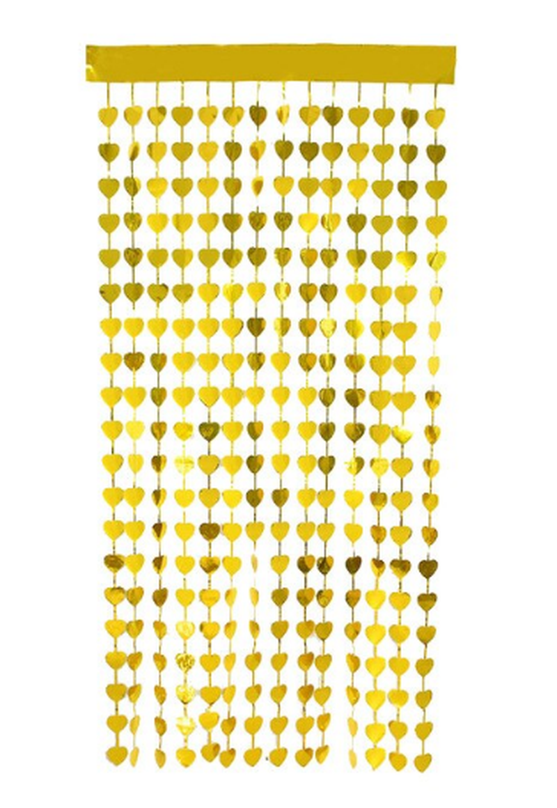 Altın Renk Kalp Şekilli Metalize Saçaklı Arka Fon Perde Dekorasyon