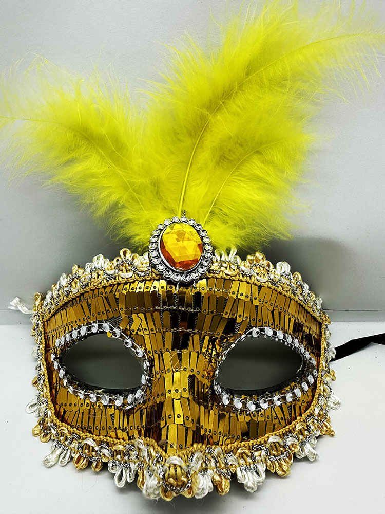 Altın Renk Payetli Pullu Tüylü Parti Maskesi
