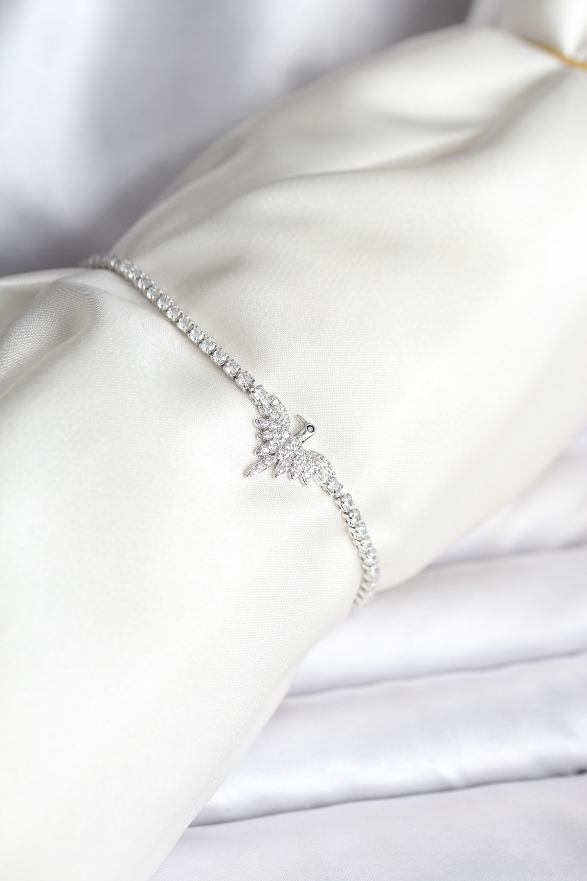 Anka Kuşu Model Zirkon Taşlı Gümüş Renk Pirinç Su Yolu Kadın Bileklik - TJ-BB8099