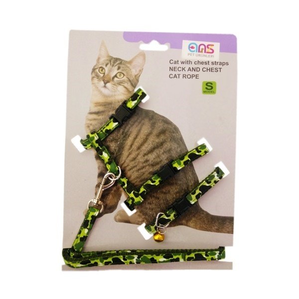 ANS Kamuflaj Desenli Kedi Göğüs Bel Tasması Yeşil