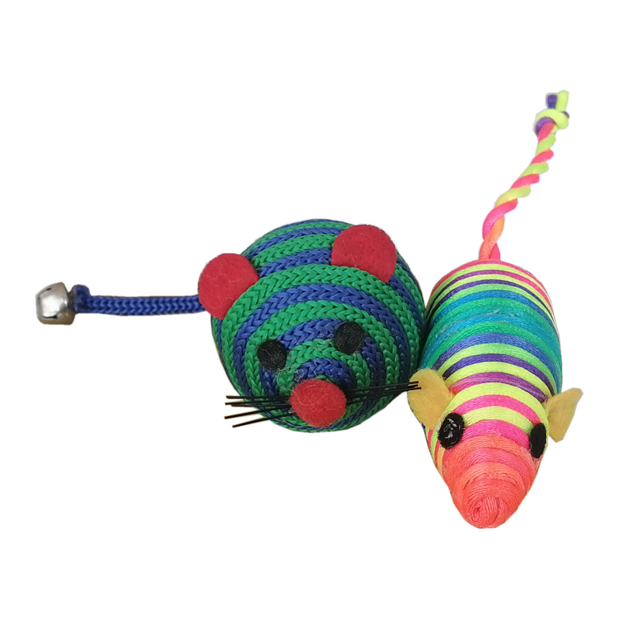 1 adet fare ve 1 adet yuvarlak renkli kedi oyuncağıdır.