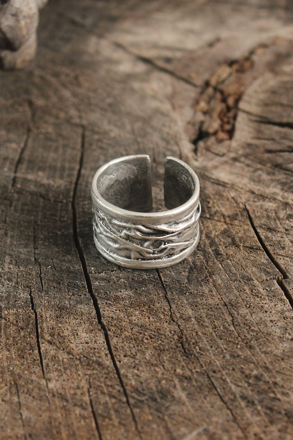 Antik Gümüş Renk Motif İşleme Ayarlanabilir Erkek Yüzük - TJ-EY598