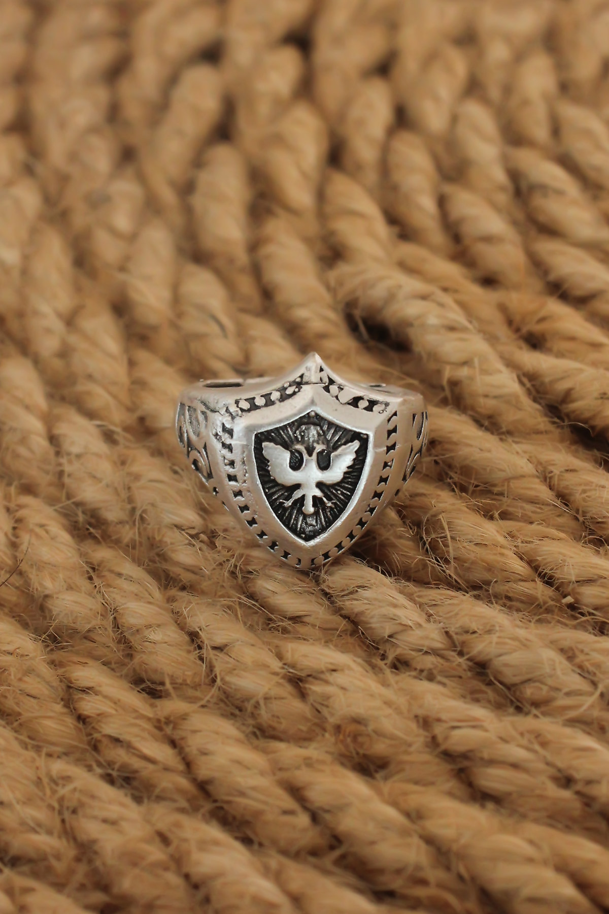 Antik Gümüş Renk Selçuklu Kartalı Ayarlanabilir Erkek Yüzük - TJ-EY583