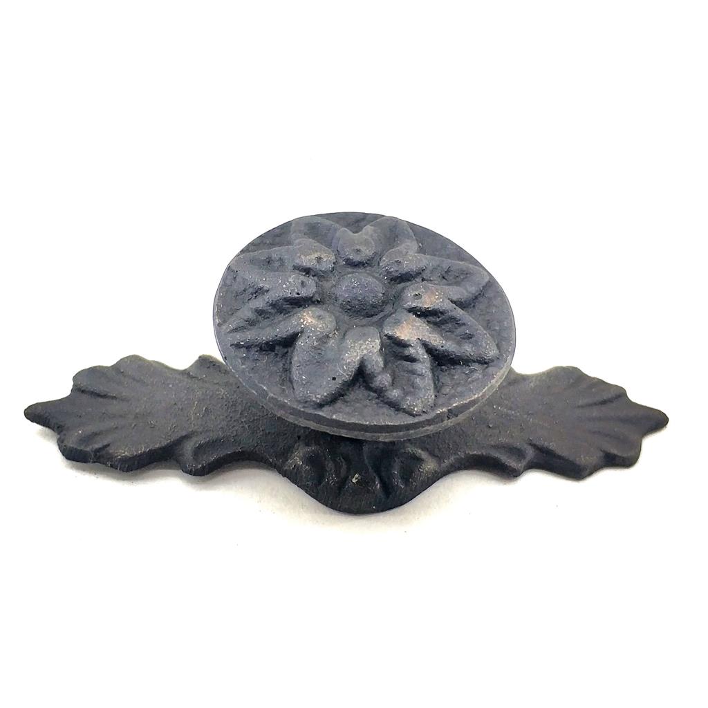 Antika Tarz Dekoratif Pirinç Çiçek Düğme - 29x70 mm, Oksit