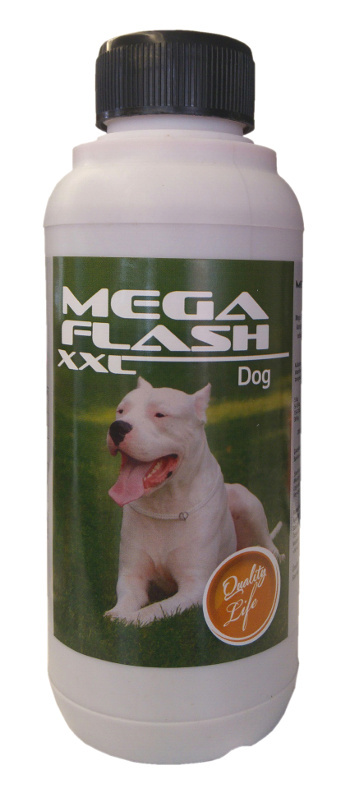 Köpeklerinizin kas-kemik gelişiminde ve vitamin eksikliklerinin giderilmesine yardımcı olur. Mega Flash hayvanların gıdalarına iyice karıştırılarak verilir. Uygulamadan iyi netice alınabilmesi için 2 ay süreyle kullanılmalıdır