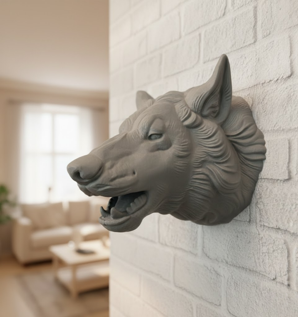 Bu dekor ürün yalnızca bir süs eşyası değil, aynı zamanda güçlü bir semboldür. Kurt figürü; güç, özgürlük, sadakat ve liderliği temsil ettiğinden, hediye olarak da oldukça anlamlı bir tercihtir. Özellikle yeni ev hediyesi, ofis hediyesi, doğum günü hediyesi veya koleksiyon amaçlı kullanımlar için idealdir. Oturma odası, çalışma odası, giriş holü veya özel koleksiyon köşelerinde şık bir duruş sergiler. Hem sanat severlere hem de doğa temasını sevenlere hitap eden bu duvar heykeli, bulunduğu ortamı sade ama güçlü bir şekilde tamamlar. Gri tonlaması sayesinde her renk dekorasyona rahatlıkla uyum sağlar ve mekâna modern bir dokunuş kazandırır.