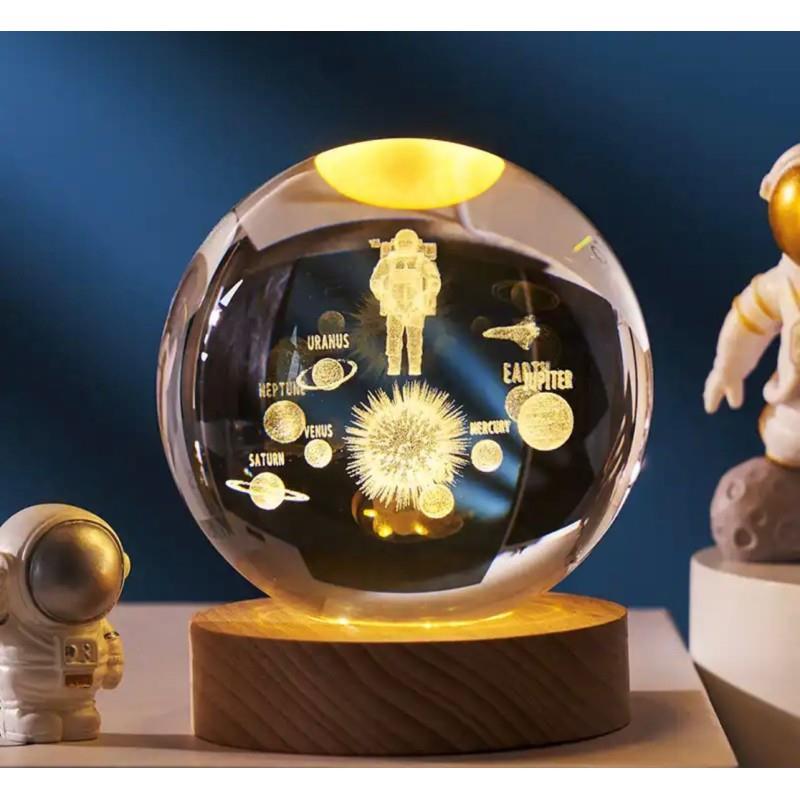 Astronot ve Gezegenler Renk Değiştiren Işıklı Cam Küre 6cm