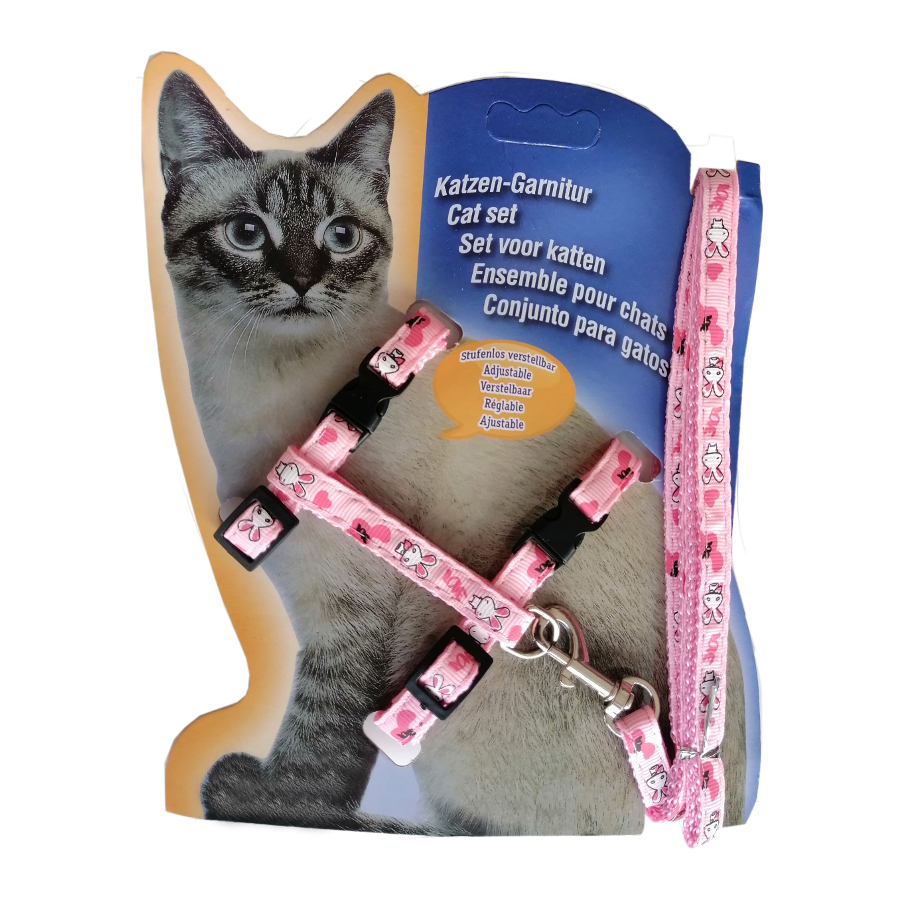 Yetişkin kediler için üretilmiş kedi göğüs bel tasmasıdır. Boyun ve göğüs kısmı ayarlanabilir özellikte ve klipslidir. Göğüs tasması ve gezdirme tasması set halindedir.