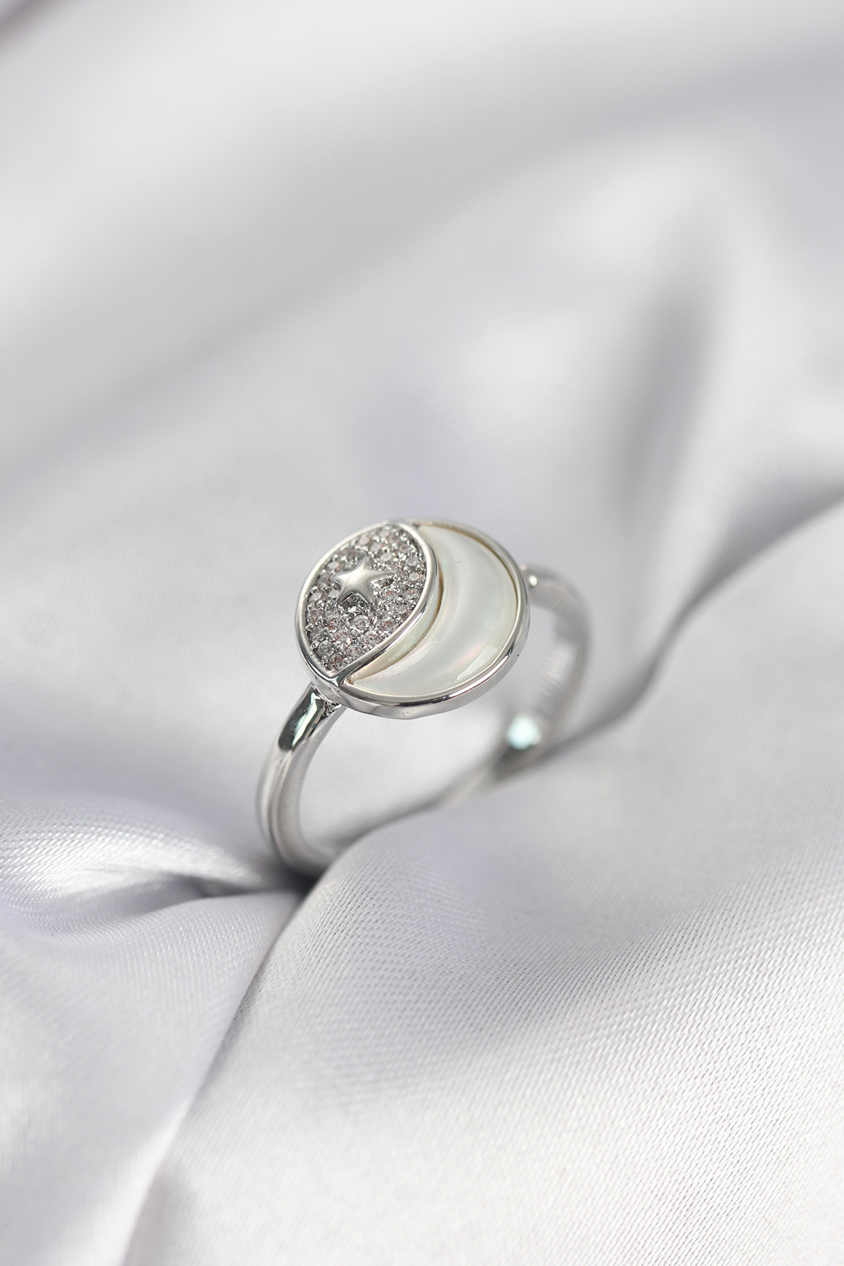 Ay Yıldız Model Gümüş Renk Zirkon Taşlı Kadın Yüzük - TJ-BYK3996