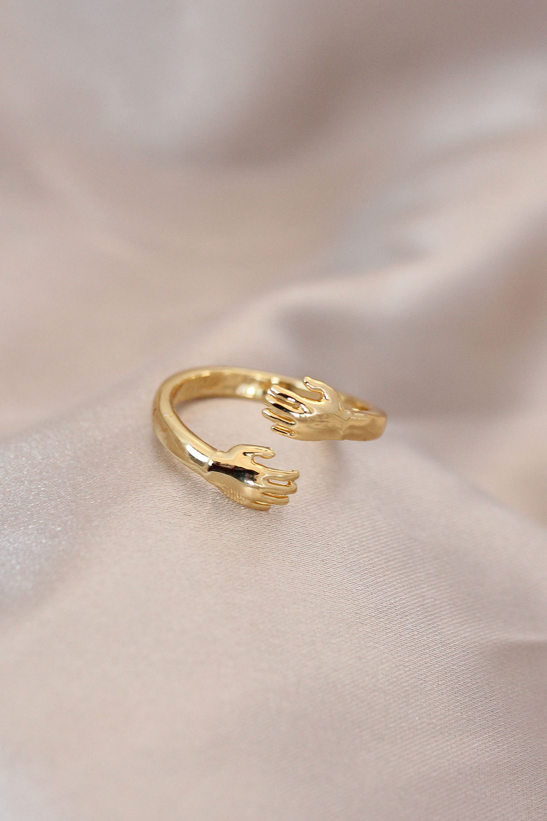 Ayarlamalı Altın Renk Metal Sarılan Eller Model Yüzük - TJ-BYK2062