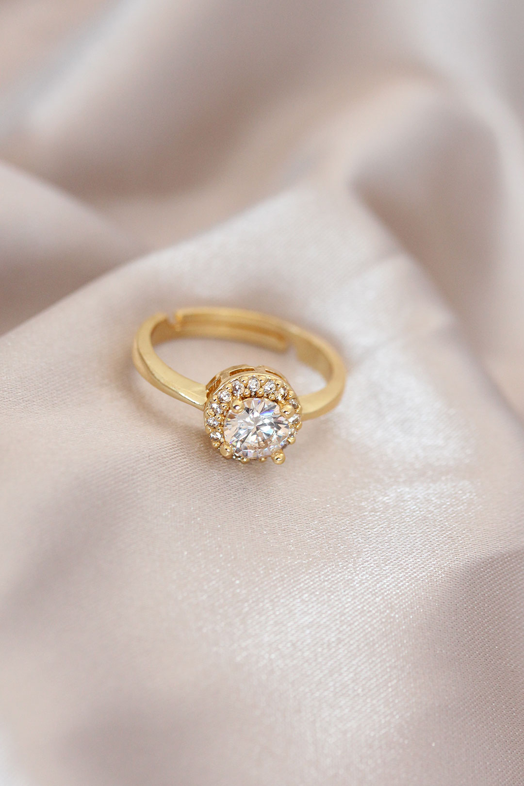Ayarlamalı Altın Renk Metal Zirkon ve Kristal Taşlı Oval Model Yüzük - TJ-BYK2078