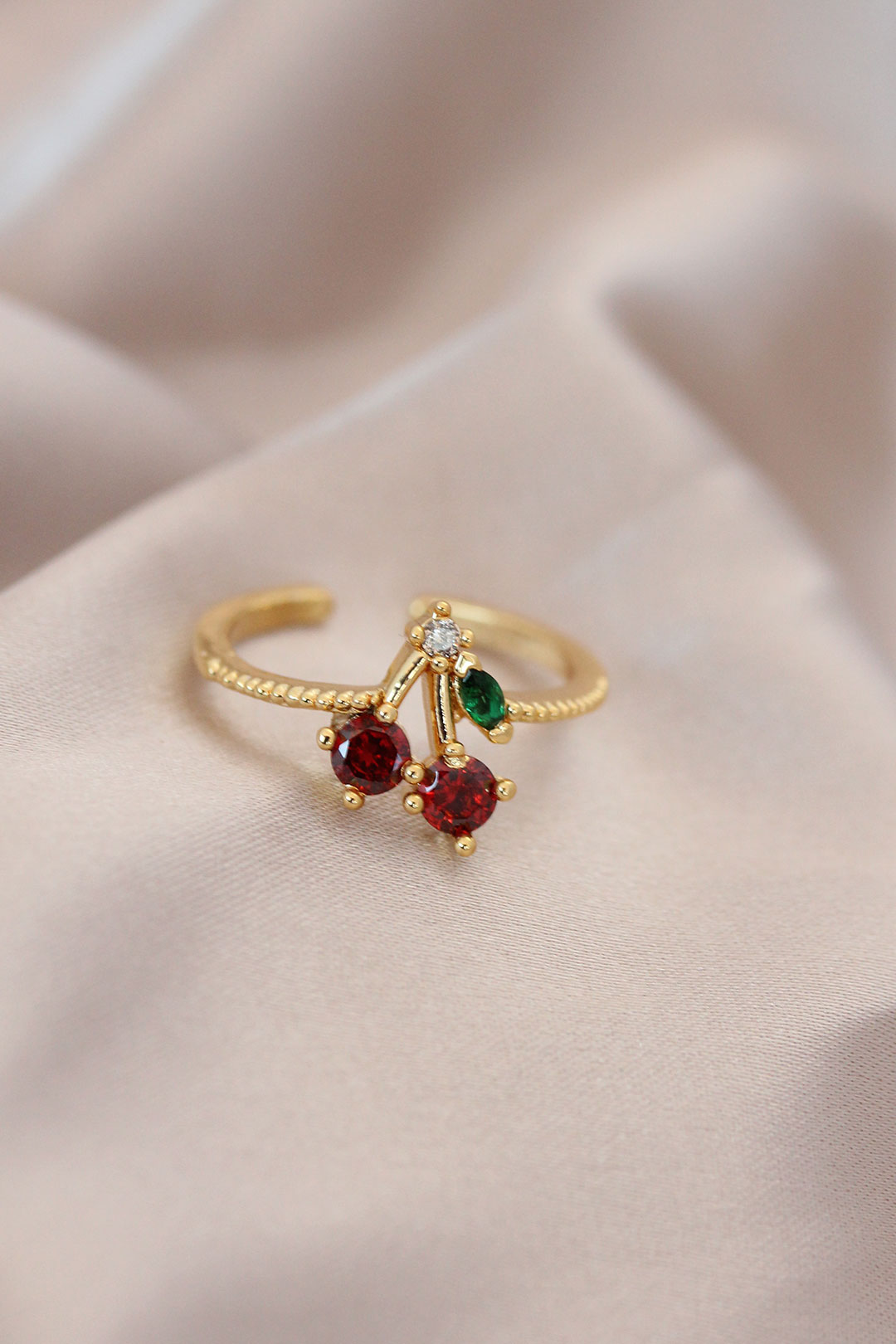 Ayarlamalı Gold Renk Metal Renkli Zirkon Taşlı Kiraz Yüzük - TJ-BYK2081