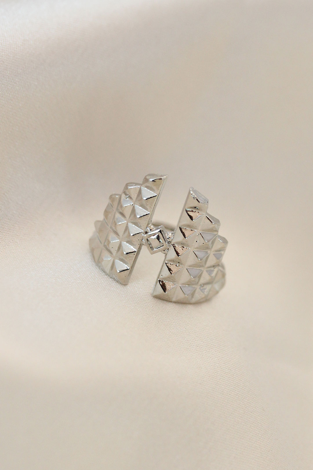 Ayarlamalı Gümüş Renk Metal Zirkon Taşlı Piramit Yüzük - TJ-BYK2022