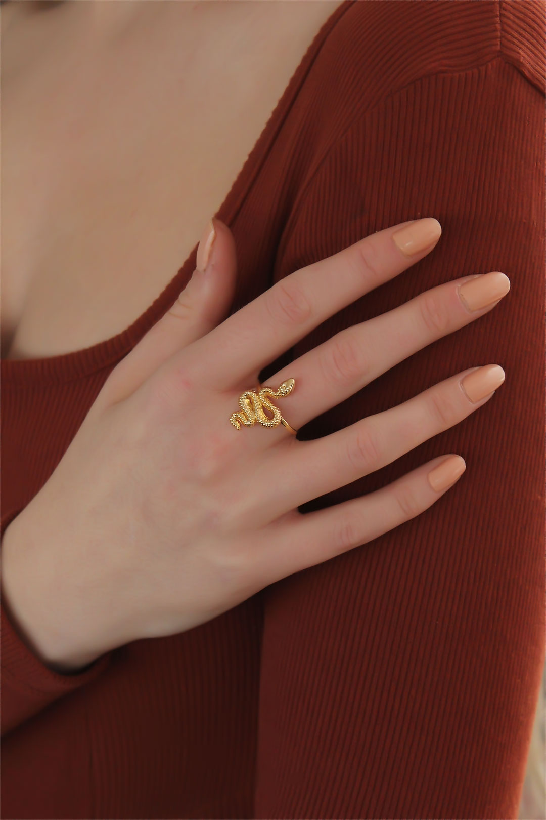 Ayarlanabilir Altın Renk Yılan Yüzük - TJ-BYK2255