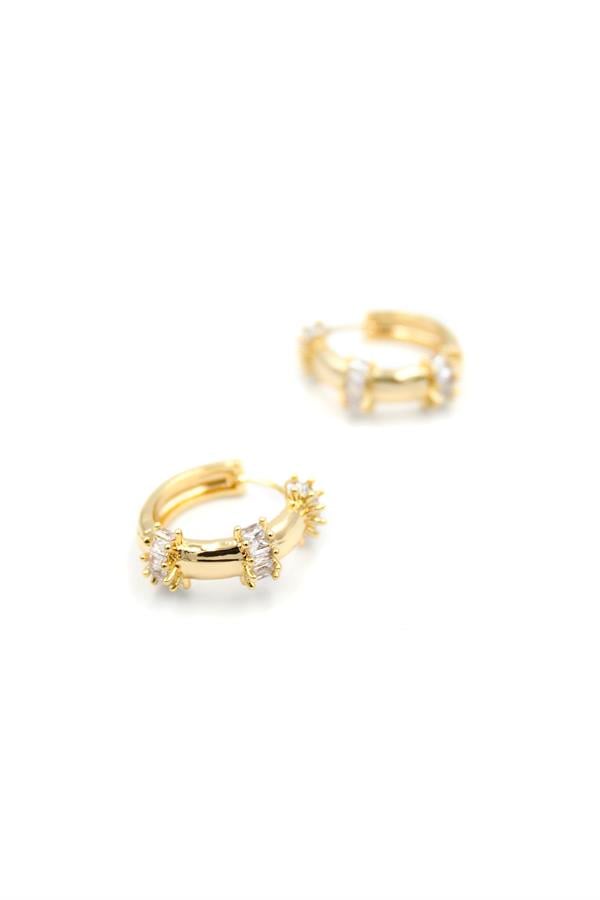 Baget Taşlı Küpe - Altın