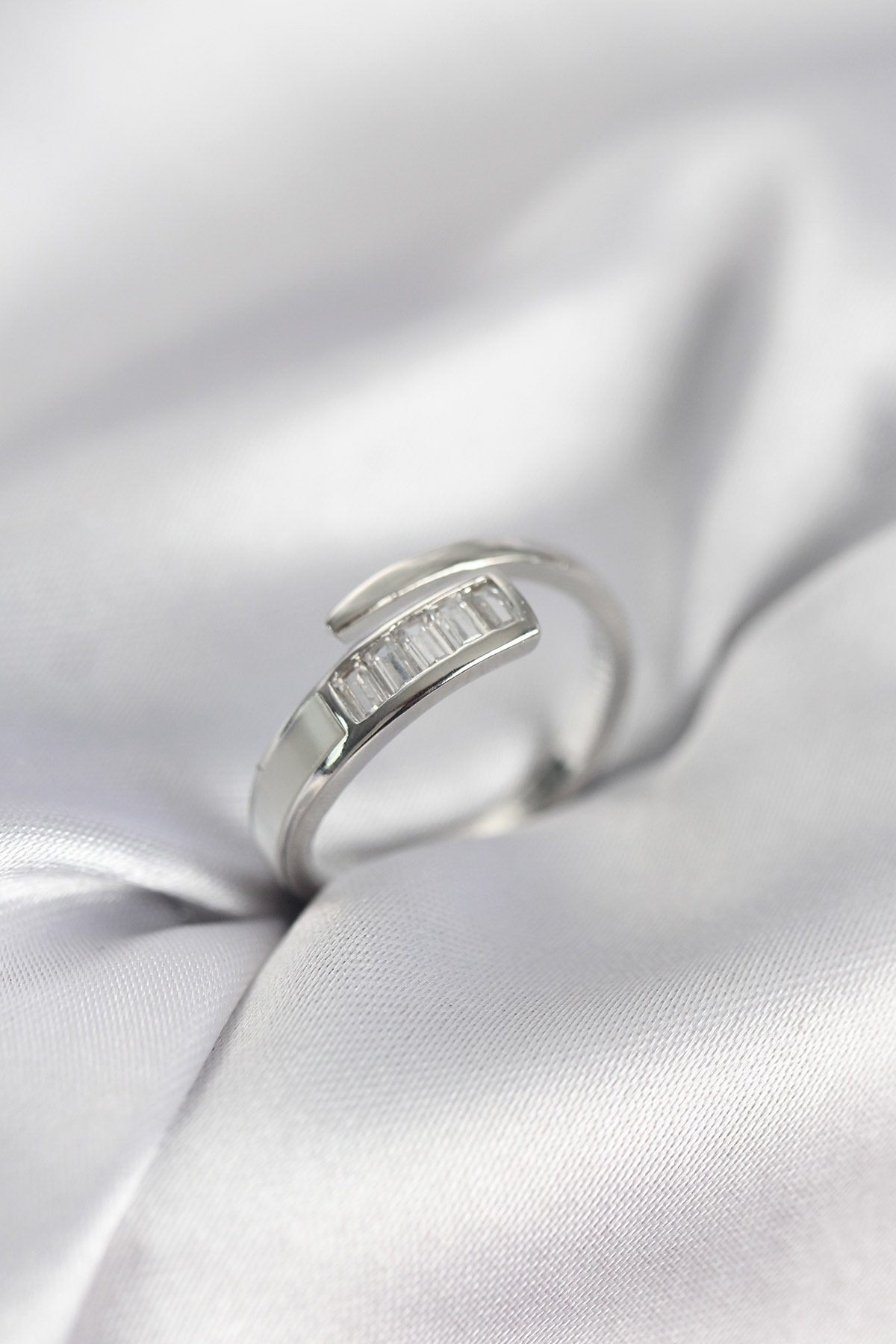 Baget Zirkon Taşlı Gümüş Renk Kadın Yüzük - TJ-BYK3968