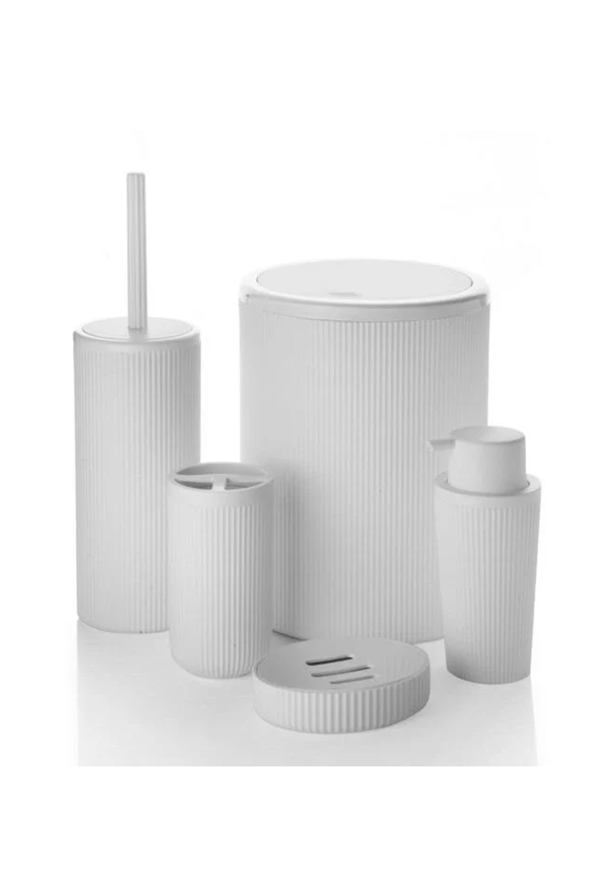 Banyo Takımı Beyaz - Beyaz Çizgili Yuvarlak 5'li Banyo Seti