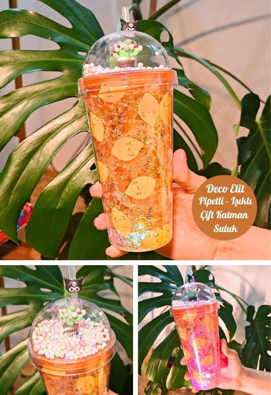 • Çocuklar ve gençler için tasarlanmış bu LED ışıklı pipetli suluk, eğlenceli görünümüyle dikkat çeker. İçindeki renkli ışıklar ve meyve desenli dış yüzeyi sayesinde su içmek artık daha keyifli! Şeffaf kapağı ve pipetiyle pratik kullanım sunarken, damlatma yapmaz. Üst kısmındaki sevimli figür detayı çocukların ilgisini çeker. Dayanıklı malzemeden üretilmiştir ve BPA içermez. Okulda, sporda, gezilerde rahatça taşınabilir. Hem işlevsel hem de eğlenceli bu suluk, çocuklar için harika bir hediye seçeneğidir.