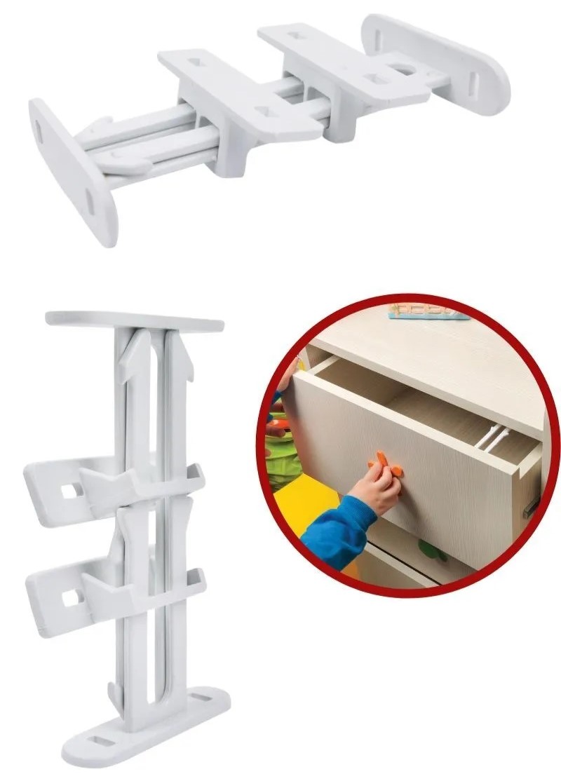 Bebek Çocuk Koruma Kilidi - Dolap Çekmece Kilidi Sürgülü Kilit ; ile evdeki dolap ve çekmece kapaklarıyla birlikte çocuklarınız için tehlike bulunduran her yere yapıştırabileceğiniz Çocuk Koruma Kilidi: Geçmeli Dolap Kilidi.