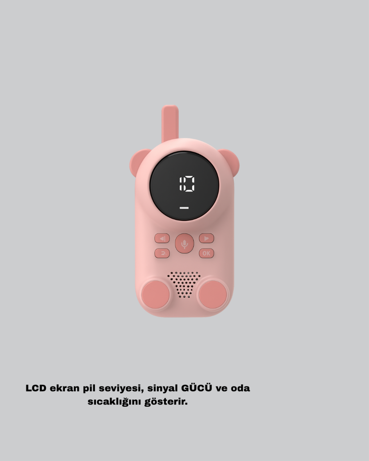 Sevimli renkli gövdesi, çocukların ilgisini çekmekle kalmaz, aynı zamanda dayanıklı plastik + metal karışımı malzeme yapısı sayesinde uzun ömürlü bir kullanım sunar. Bebek takibi, oyun iletişimi ve genel güvenlik amacıyla kullanılabilen bu telsiz, hem dayanıklı hem güvenli hem de çok yönlü bir iletişim desteği sunar.
