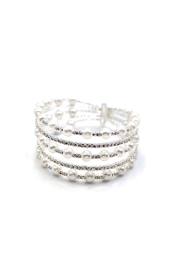 Beş Sıra İncili Su Yolu Bileklik - Gümüş