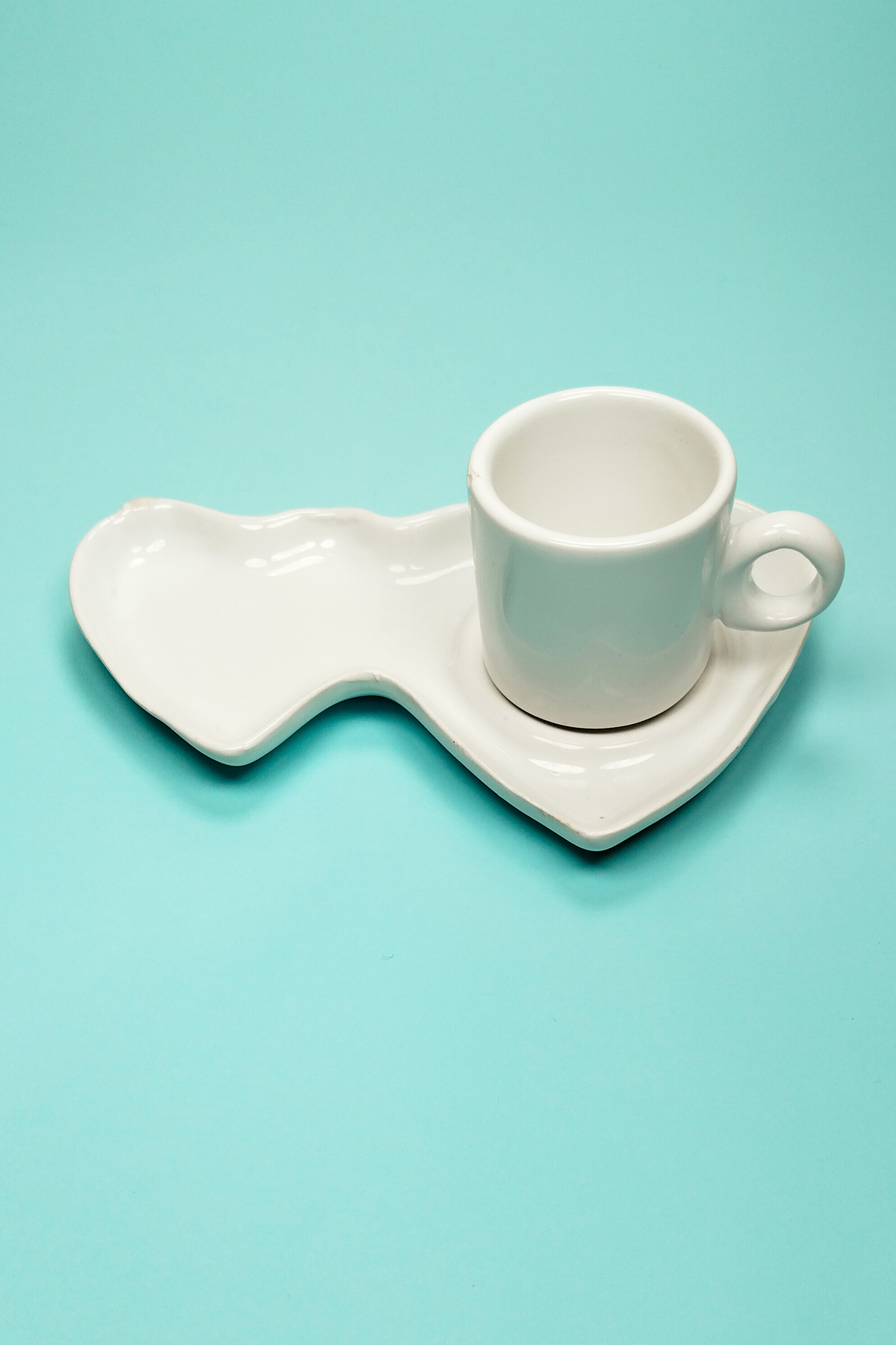 Beyaz Lokumluk Gözlü Seramik Kahve Fincanı Kalp Tasarım