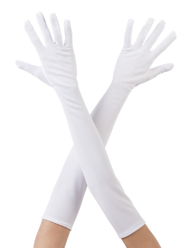 Beyaz Renk Dirseğe Kadar Uzun Kumaş Eldiven 40 cm