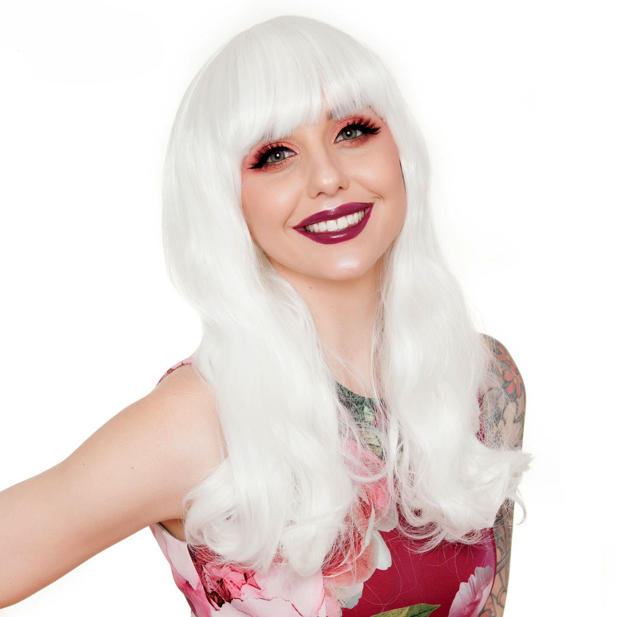 Beyaz Renk Kahküllü Dalgalı Uzun Parti Peruğu