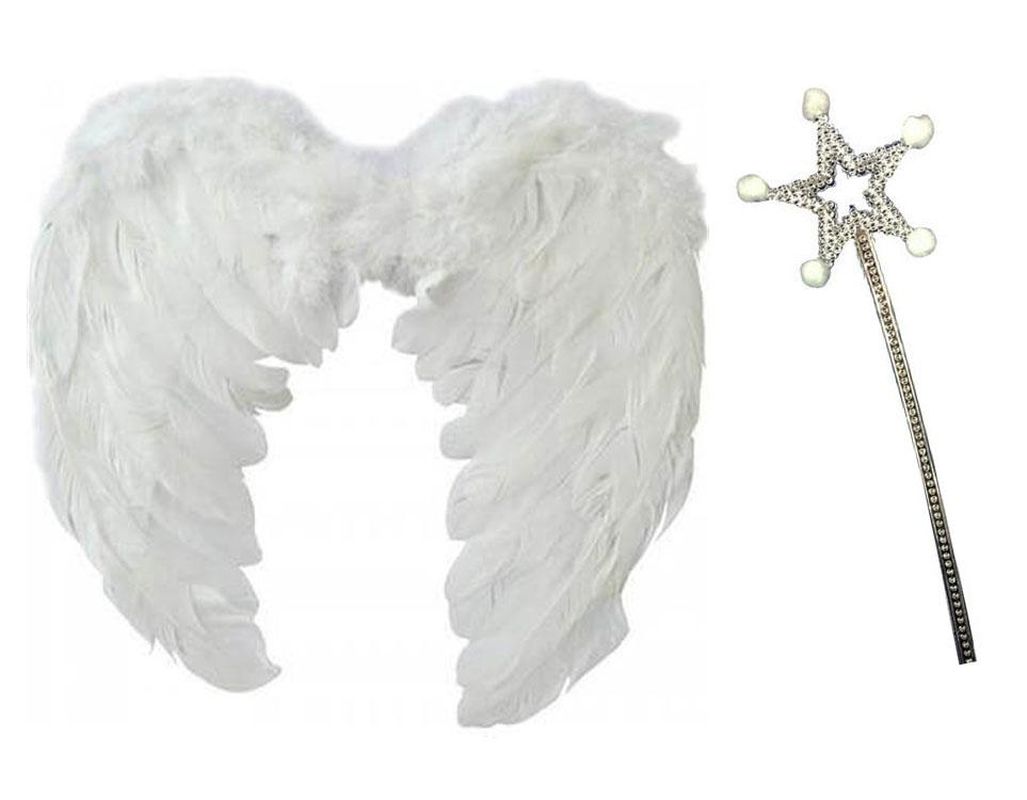 Küçük Melek Kanadı Ve Beyaz Ponponlu Asa Seti