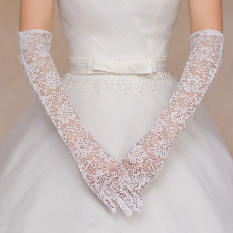 Beyaz Renk Uzun Boy Dantelli Eldiven