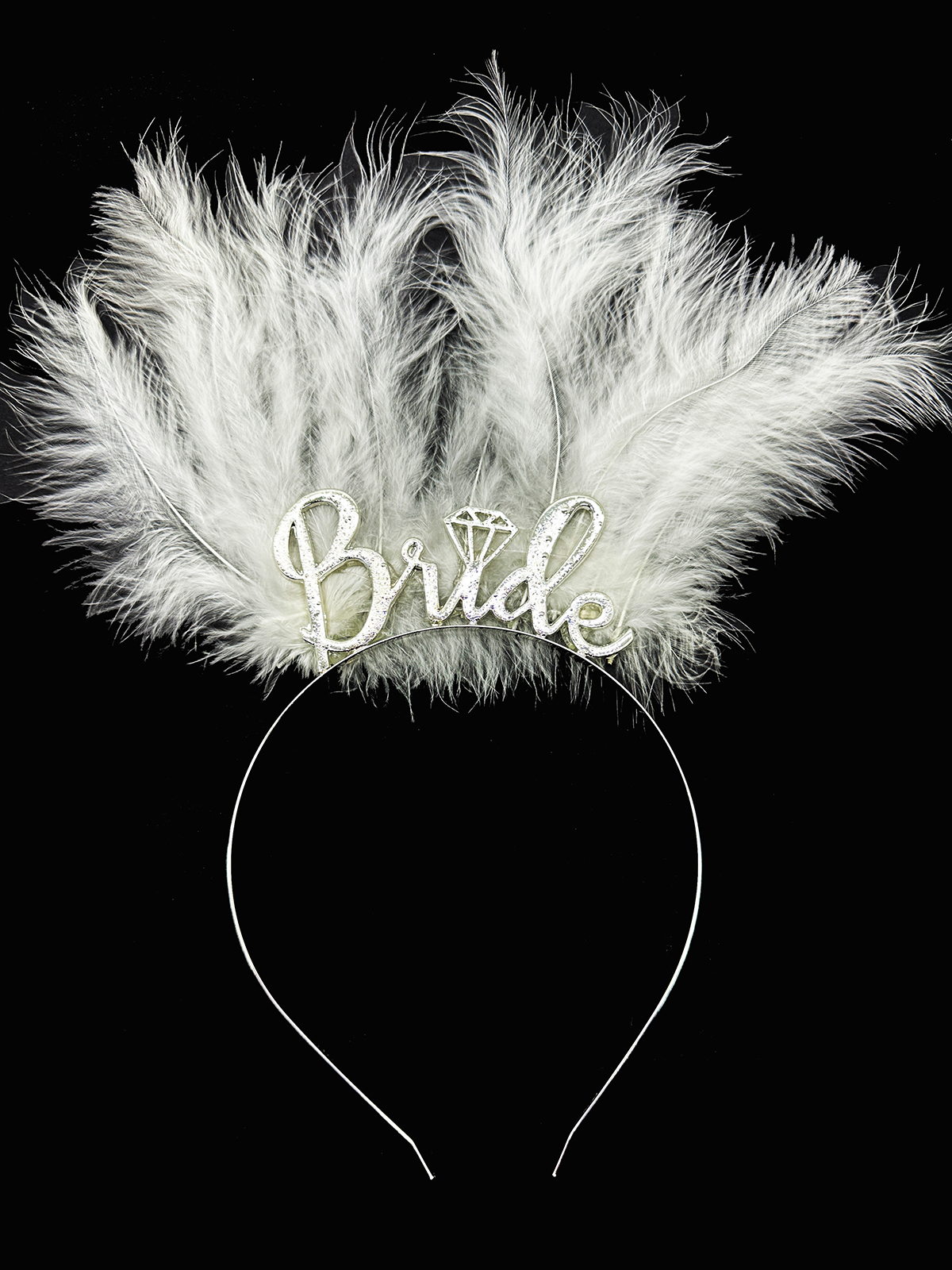 Beyaz Tüylü İthal Gümüş Renk Bride Gelin Tacı