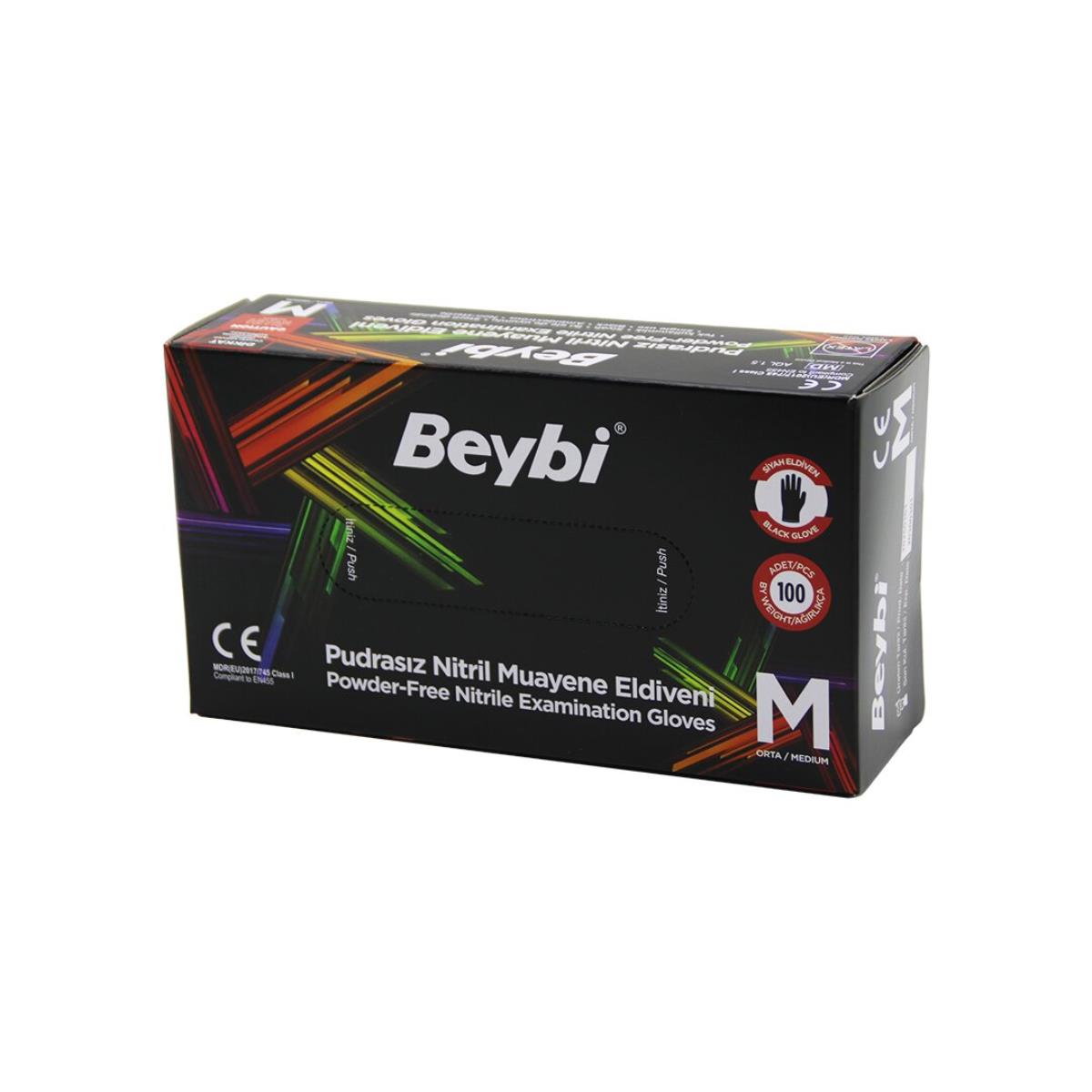 Beybi M Siyah Pudrasız Nitril Muayene Eldiveni 100Lü