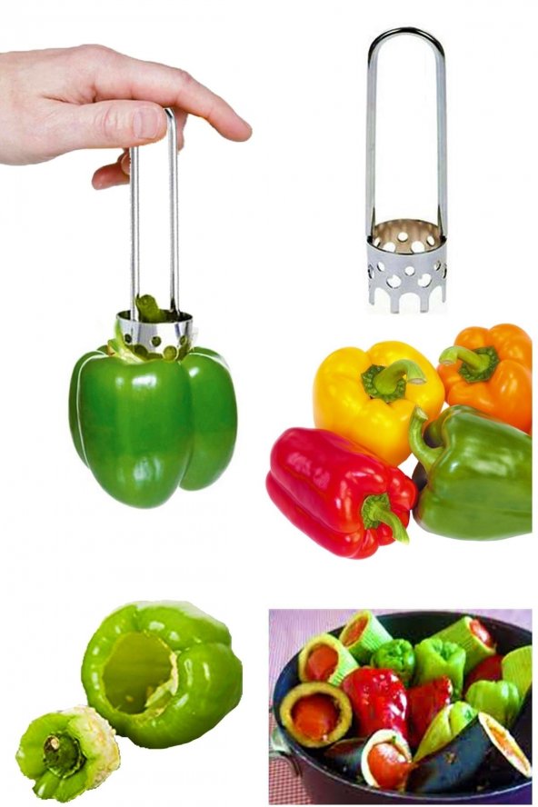 Bu ürün ile dolmalık biberlerin sap kısmını ve içindeki çekirdeklerini tek bir hamleyle kolayca çıkarabilir, işinizi büyük ölçüde kolaylayabilirsiniz!