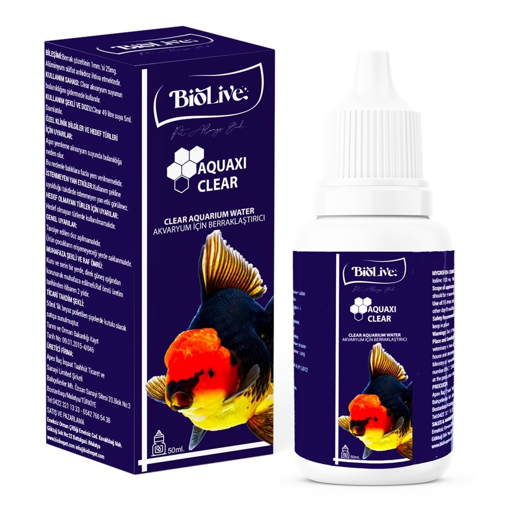 Biolive Aquaxı Clear Akvaryum Su Berraklaştırıcı 50ml