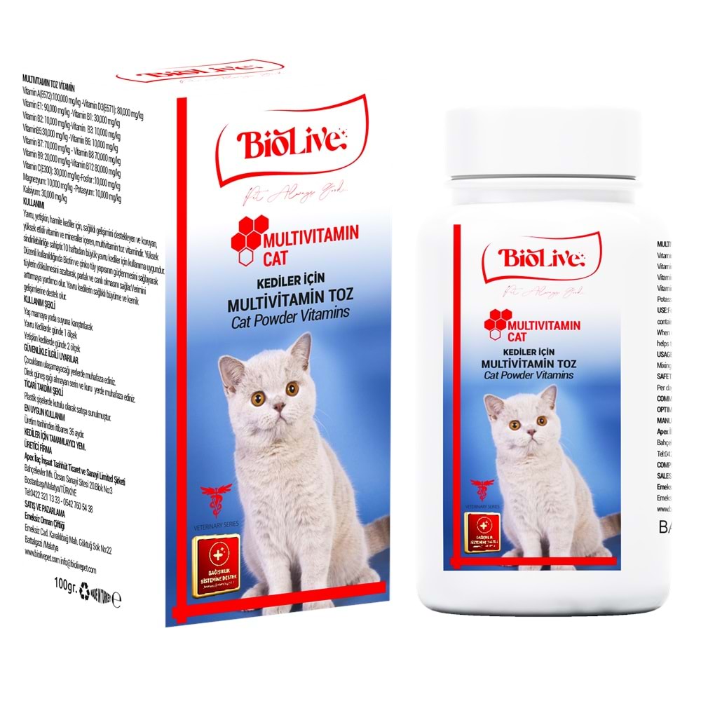 Biolive Kediler İçin Multivitamin Toz Vitamin 100gr