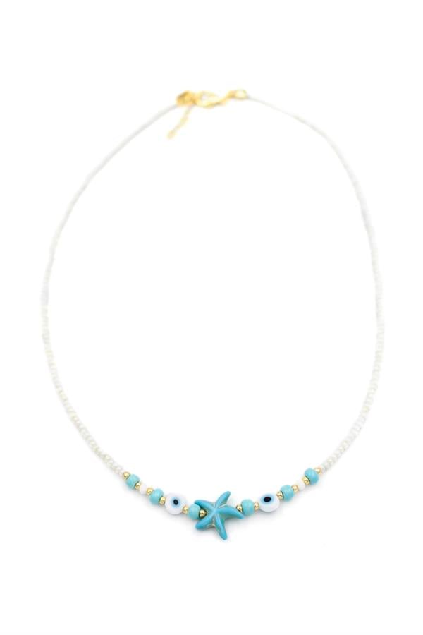 Boncuk Deniz Yıldzı Kolye - Beyaz
