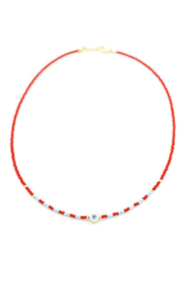 Boncuk Göz Kolye - Bordo