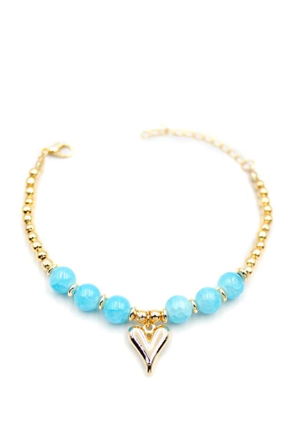 Boncuklu Kalp Bileklik - Mavi