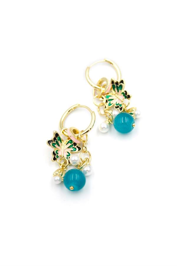 Boncuklu Kelebek Küpe - Pembe