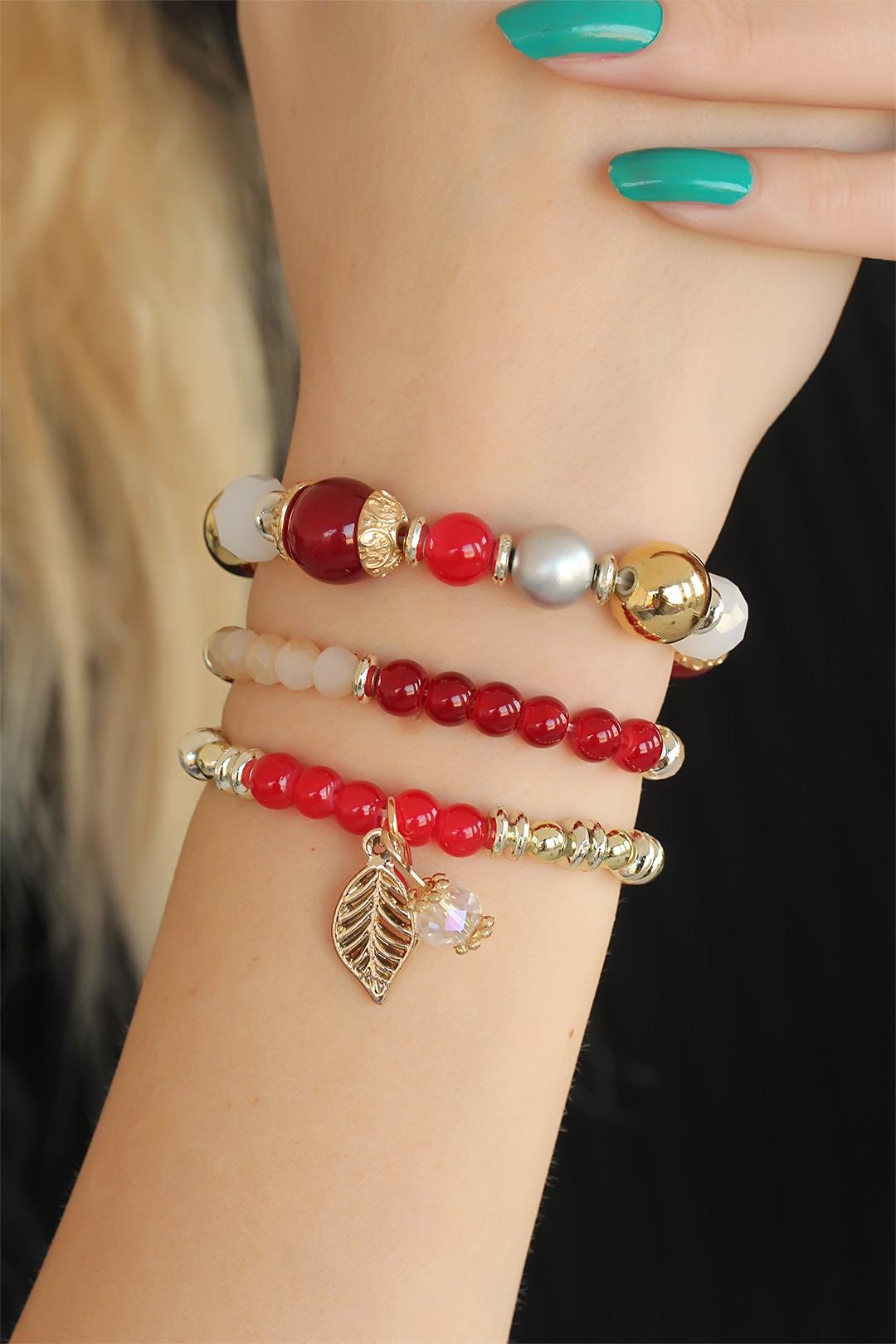 Bordo Kırmızı Boncuklu Bayan Bileklik - TJ-BB2650-KS