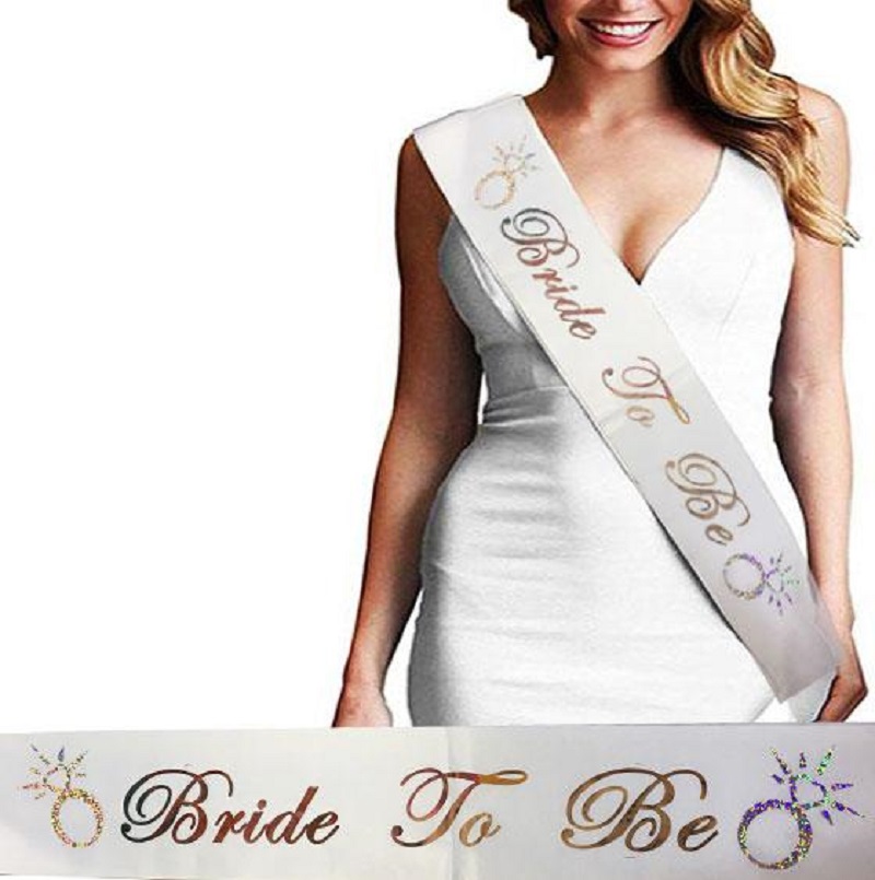 Bride To Be Saten Kuşak Beyaz Üzeri Hologramlı Metalize Rose Yazılı 160x9.5 cm