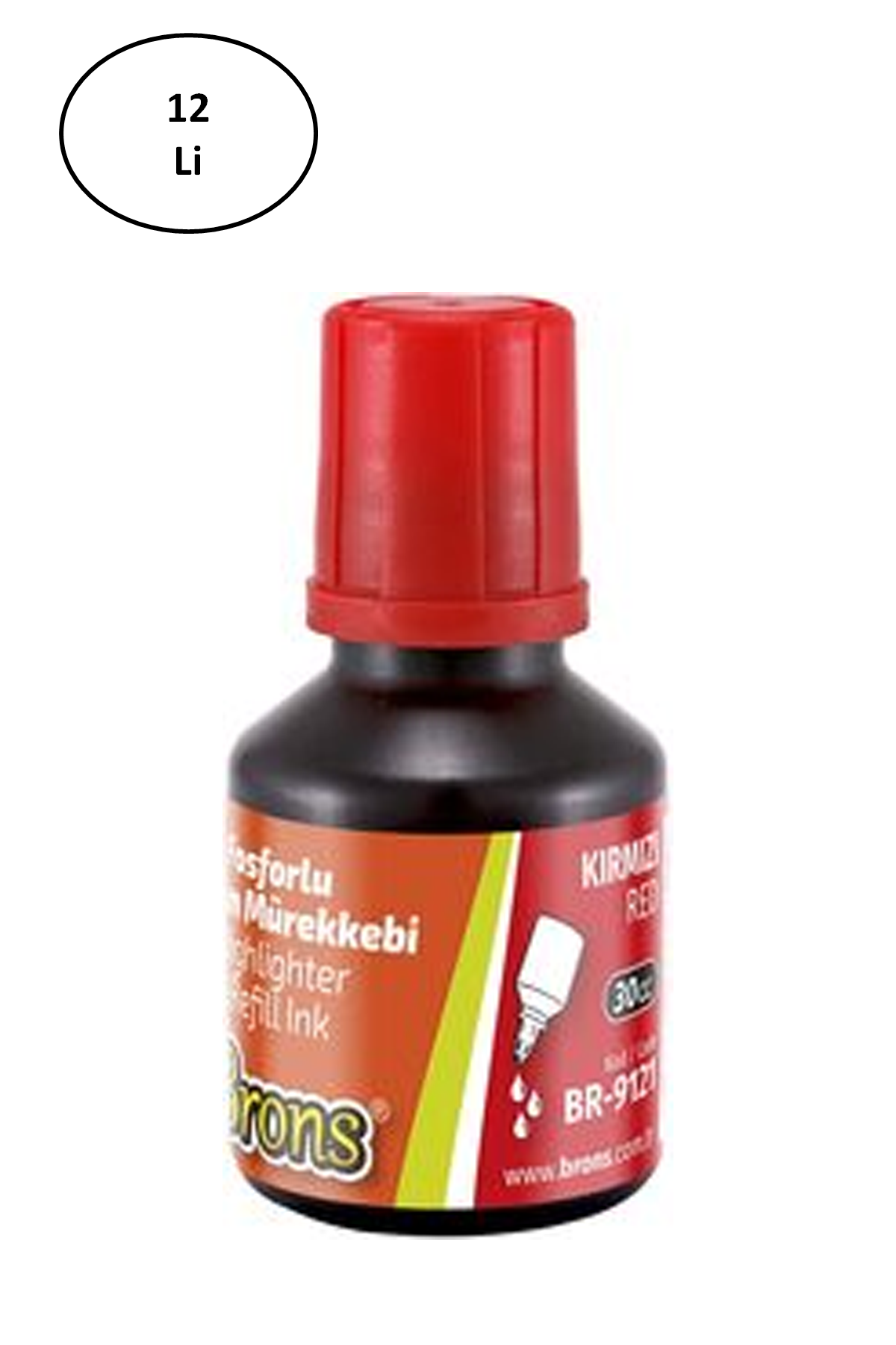 | Brons Fosforlu Kalem Mürekkebi 30 cc. Kırmızı 12'li - Ürün Kodu : KAR.BR-9121 |