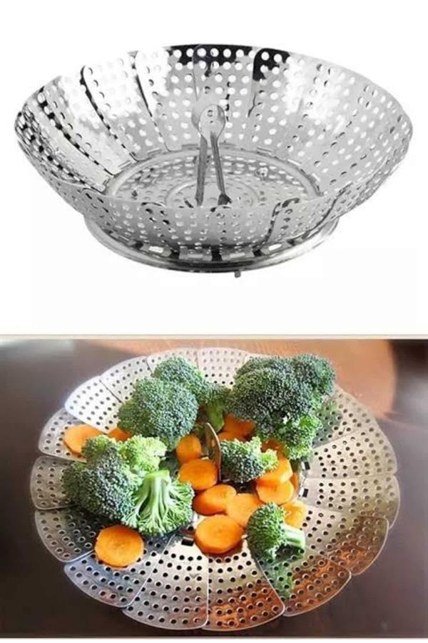 Sağlıklı ve pratik yemek hazırlamanın en akıllı yollarından biri olan buharda pişirme yöntemi, bu katlanabilir sebze haşlama sepetiyle artık çok daha kolay. Paslanmaz çelikten üretilmiş olan bu ürün, yüksek ısıya dayanıklı yapısı sayesinde uzun süreli ve güvenli kullanım sunar. Tencerenizin içine kolayca yerleştirebileceğiniz bu sepet, sebzelerinizi doğrudan suyla temas ettirmeden, yalnızca buharla pişirerek besin değerlerini maksimum seviyede korumanıza olanak tanır.Katlanabilir yapısı sayesinde hem farklı çapta tencerelere uyum sağlar hem de kullanılmadığında minimum alan kaplayarak dolaplarınızda rahatlıkla muhafaza edilebilir. Delikli yüzeyi buharın eşit şekilde yayılmasını sağlar, böylece tüm sebzeler homojen biçimde pişer. Ayrıca bulaşık makinesinde yıkanabilme özelliğiyle temizlik işlemlerini de zahmetsiz hale getirir.İster brokoli, havuç gibi sert sebzeleri, ister ıspanak gibi narin yeşillikleri buharda pişirin; bu çok yönlü haşlama sepeti her koşulda üstün performans gösterir. Sağlıklı pişirme alışkanlıklarını benimseyenler için mutfağın vazgeçilmezlerinden biri olacak bu ürün, aynı zamanda modern ve fonksiyonel yapısıyla günlük kullanımda büyük kolaylık sunar.